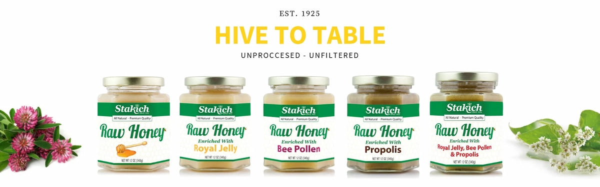 One of our bestsellers! Our Stakich Raw Honey is enriched with all natural Royal Jelly, Bee Pollen and Propolis. The rich flavor of our raw honey makes this honey dynamically healthy while keeping true to the natural taste you love. We make every effort...