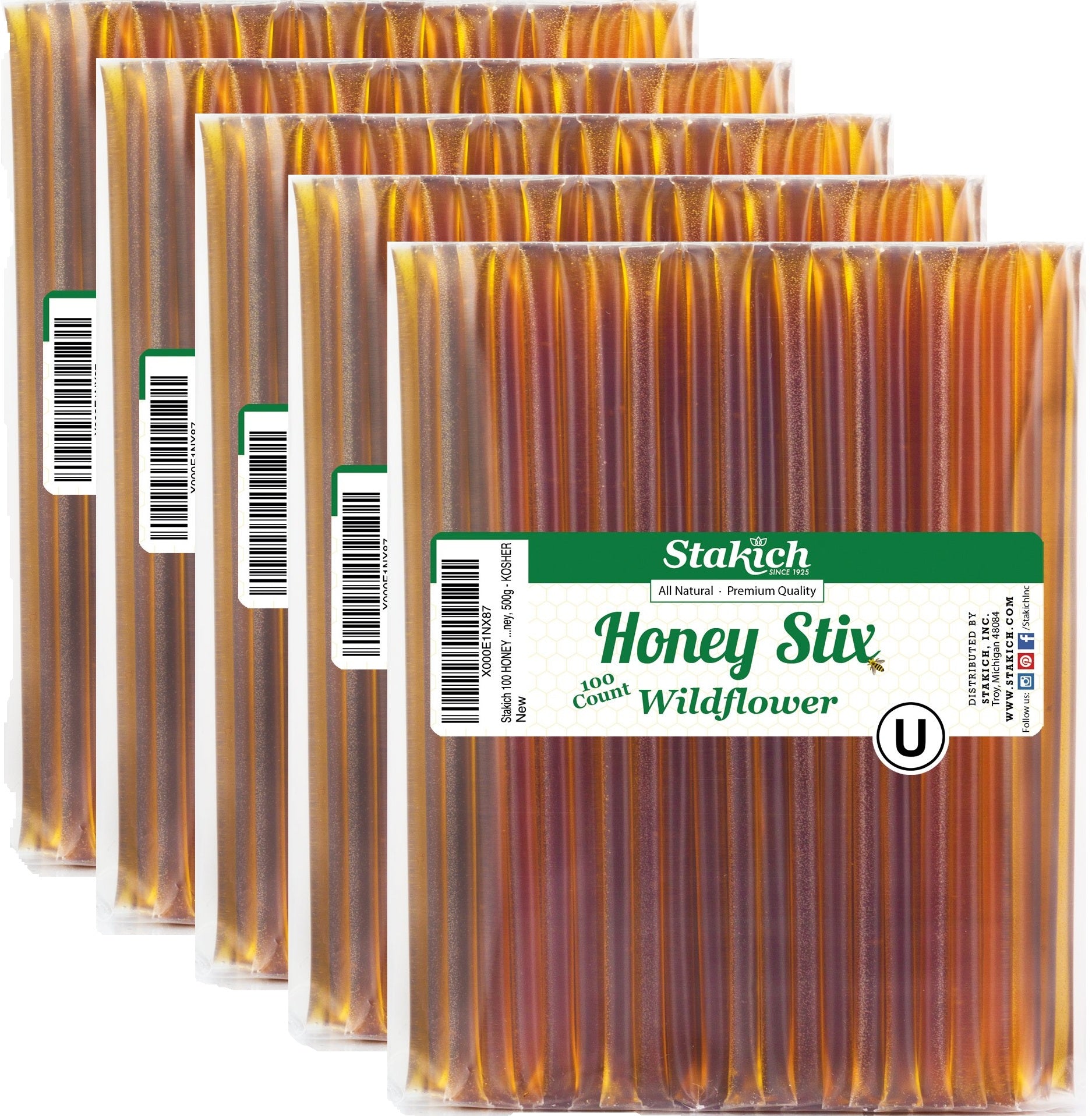 Our Stakich Wildflower Honey Stix have a mild aroma and floral taste. There are 5 grams of pure U.S. Grade A wildflower honey in each honey stick. Our no mess packaging makes it easy to open and is excellent for travel. Naturally delicious, conveniently nutritious!