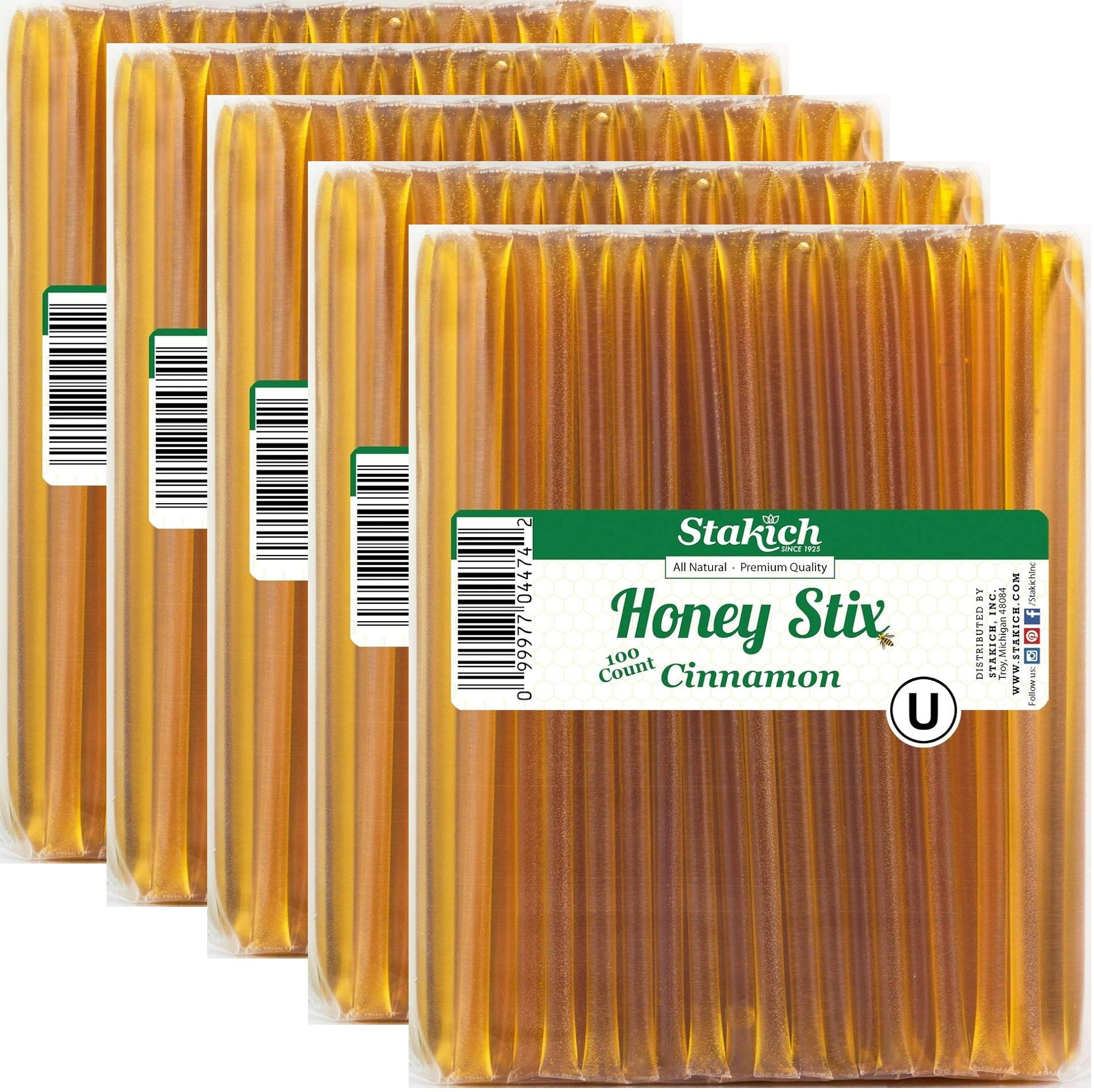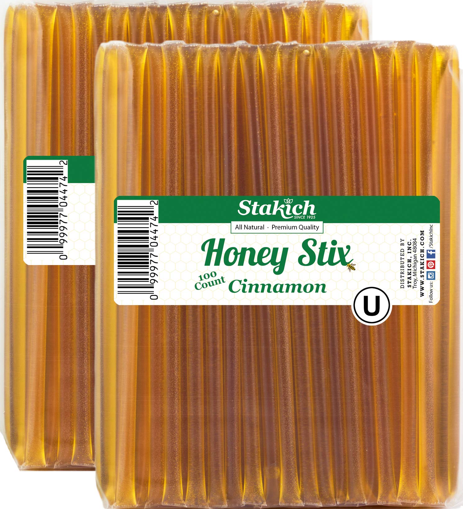 Our Stakich Cinnamon Honey Stix will remind you of red hots candy, but sweetened with all natural honey. There are 5 grams of pure U.S. Grade A honey in each honey stick. Our no-mess packaging makes it easy to open and is excellent for travel. Naturally delicious, conveniently nutritious!